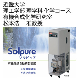 近畿大学理工学部理学科化学コース 有機合成化学研究室 松本浩一准教授、及び、大学院生の濱﨑さんに、ソルピュアPSOS-Sのご使用状況についてインタビューさせていただきました。